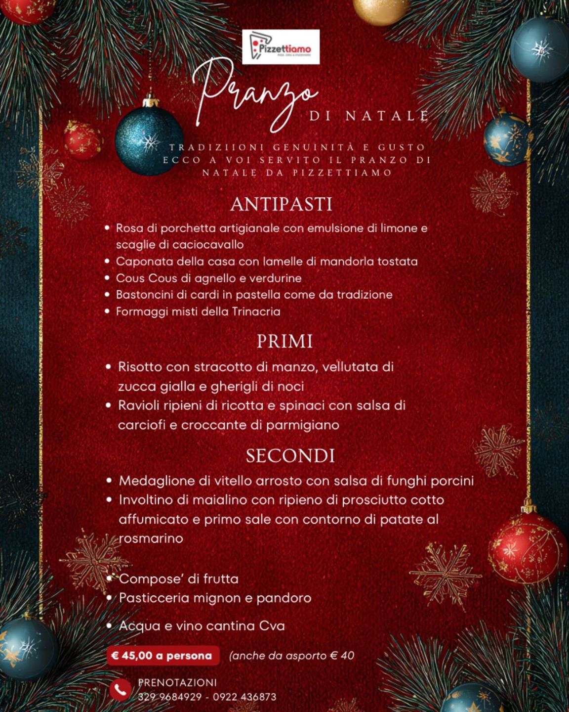 Natale si festeggia a tavola, e noi abbiamo preparato un menù dedicato per farti vivere una giornata senza stress e con ottimo cibo. Atmosfera calda, piatti della tradizione e tutto lo spazio per goderti i tuoi parenti in piena serenità.